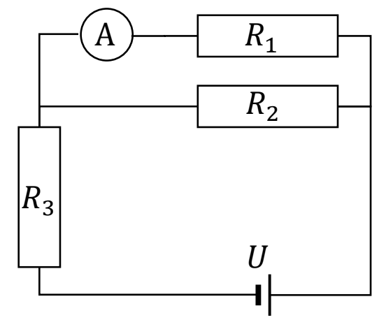 $\Omega$ och $R_3=30,0 \Omega$. Amperemetern har försumbar resistans. Vad visar amperemetern i kretsen?